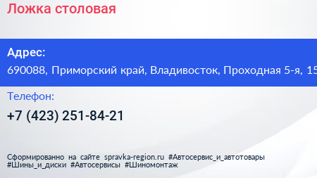 Ложка, столовая по адресу 690088, Приморский край, Владивосток, Проходная 5-я, 15 в дальнейшем Организация, размещена в следующих категориях: