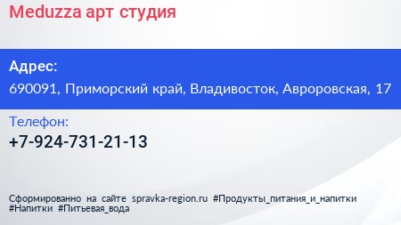 Meduzza, арт-студия по адресу 690091, Приморский край, Владивосток, Авроровская, 17 в дальнейшем Организация, размещена в следующих категориях: