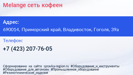 Melange, сеть кофеен по адресу 690014, Приморский край, Владивосток, Гоголя, 39а в дальнейшем Организация, размещена в следующих категориях: