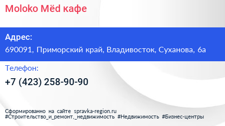 Moloko & Mёd, кафе по адресу 690091, Приморский край, Владивосток, Суханова, 6а в дальнейшем Организация, размещена в следующих категориях: