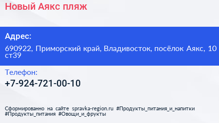 Новый Аякс, пляж по адресу 690922, Приморский край, Владивосток, посёлок Аякс, 10 ст39 в дальнейшем Организация, размещена в следующих категориях: