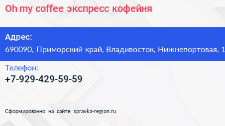 Oh, my coffee!, экспресс-кофейня по адресу 690090, Приморский край, Владивосток, Нижнепортовая, 1 в дальнейшем Организация, размещена в следующих категориях: