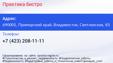Адрес: Приморский край, Владивосток, Алеутская, 11