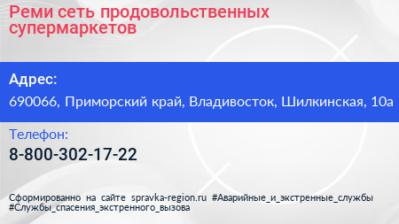 Реми, сеть продовольственных супермаркетов по адресу 690066, Приморский край, Владивосток, Шилкинская, 10а в дальнейшем Организация, размещена в следующих категориях:
