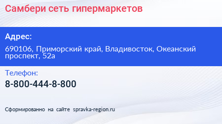 Самбери, сеть гипермаркетов по адресу 690106, Приморский край, Владивосток, Океанский проспект, 52а в дальнейшем Организация, размещена в следующих категориях: