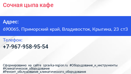 Сочная цыпа, кафе по адресу 690065, Приморский край, Владивосток, Крыгина, 23 ст3 в дальнейшем Организация, размещена в следующих категориях: