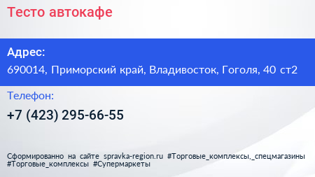 Тесто, автокафе по адресу 690014, Приморский край, Владивосток, Гоголя, 40 ст2 в дальнейшем Организация, размещена в следующих категориях: