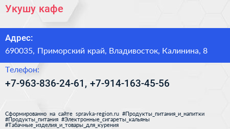 Укушу, кафе по адресу 690035, Приморский край, Владивосток, Калинина, 8 в дальнейшем Организация, размещена в следующих категориях: