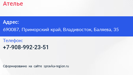 Ателье по адресу 690087, Приморский край, Владивосток, Баляева, 35 в дальнейшем Организация, размещена в следующих категориях: