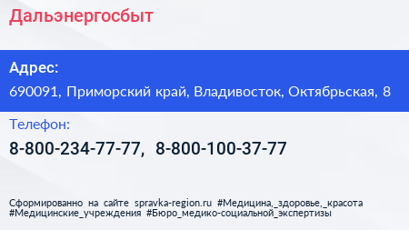 Дальэнергосбыт по адресу 690091, Приморский край, Владивосток, Октябрьская, 8 в дальнейшем Организация, размещена в следующих категориях: