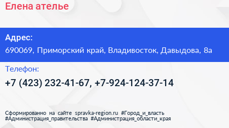 Елена, ателье по адресу 690069, Приморский край, Владивосток, Давыдова, 8а в дальнейшем Организация, размещена в следующих категориях: