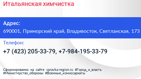 Итальянская химчистка по адресу 690001, Приморский край, Владивосток, Светланская, 173 в дальнейшем Организация, размещена в следующих категориях: