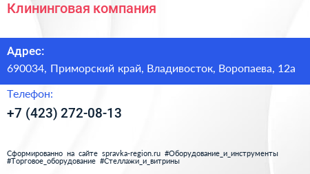 Клининговая компания по адресу 690034, Приморский край, Владивосток, Воропаева, 12а в дальнейшем Организация, размещена в следующих категориях: