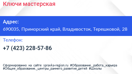 Ключи, мастерская по адресу 690035, Приморский край, Владивосток, Терешковой, 28 в дальнейшем Организация, размещена в следующих категориях: