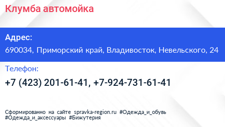 Клумба, автомойка по адресу 690034, Приморский край, Владивосток, Невельского, 24 в дальнейшем Организация, размещена в следующих категориях: