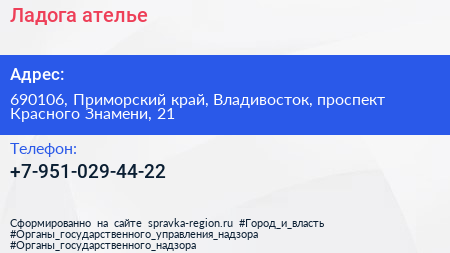 Ладога, ателье по адресу 690106, Приморский край, Владивосток, проспект Красного Знамени, 21 в дальнейшем Организация, размещена в следующих категориях: