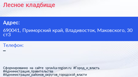 Лесное кладбище по адресу 690041, Приморский край, Владивосток, Маковского, 30 ст3 в дальнейшем Организация, размещена в следующих категориях: