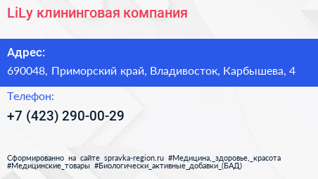 LiLy, клининговая компания по адресу 690048, Приморский край, Владивосток, Карбышева, 4 в дальнейшем Организация, размещена в следующих категориях: