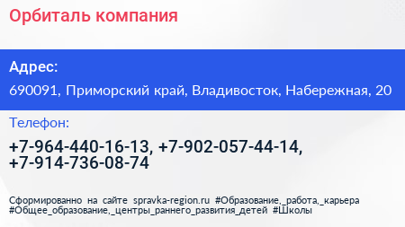 Орбиталь, компания по адресу 690091, Приморский край, Владивосток, Набережная, 20 в дальнейшем Организация, размещена в следующих категориях: