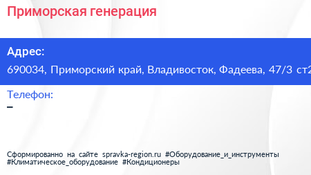 Приморская генерация по адресу 690034, Приморский край, Владивосток, Фадеева, 47/3 ст2 в дальнейшем Организация, размещена в следующих категориях: