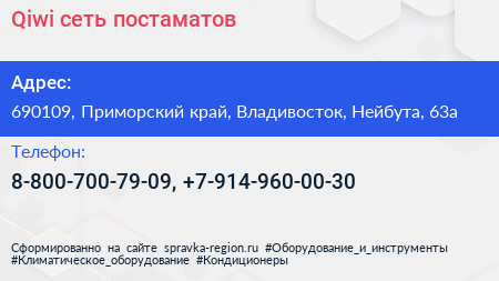 Qiwi, сеть постаматов по адресу 690109, Приморский край, Владивосток, Нейбута, 63а в дальнейшем Организация, размещена в следующих категориях: