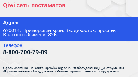 Qiwi, сеть постаматов по адресу 690014, Приморский край, Владивосток, проспект Красного Знамени, 82Б в дальнейшем Организация, размещена в следующих категориях: