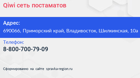 Qiwi, сеть постаматов по адресу 690066, Приморский край, Владивосток, Шилкинская, 10а в дальнейшем Организация, размещена в следующих категориях:
