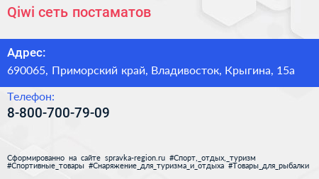 Qiwi, сеть постаматов по адресу 690065, Приморский край, Владивосток, Крыгина, 15а в дальнейшем Организация, размещена в следующих категориях: