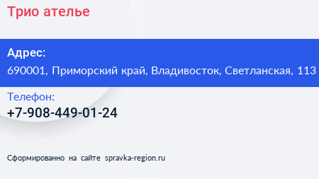 Трио, ателье по адресу 690001, Приморский край, Владивосток, Светланская, 113 в дальнейшем Организация, размещена в следующих категориях: