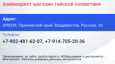 Азиямаркет, магазин тайской косметики по адресу 690039, Приморский край, Владивосток, Русская, 16 в дальнейшем Организация, размещена в следующих категориях: