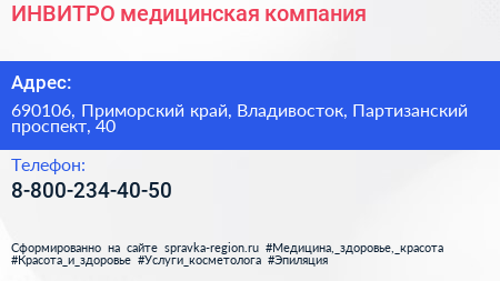 ИНВИТРО, медицинская компания по адресу 690106, Приморский край, Владивосток, Партизанский проспект, 40 в дальнейшем Организация, размещена в следующих категориях: