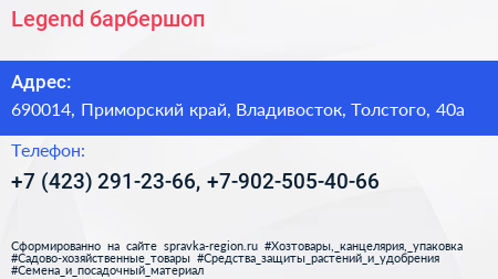 Legend, барбершоп по адресу 690014, Приморский край, Владивосток, Толстого, 40а в дальнейшем Организация, размещена в следующих категориях: