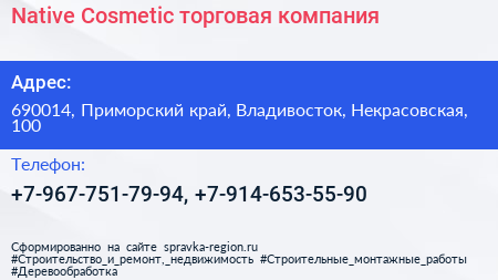 Native Cosmetic, торговая компания по адресу 690014, Приморский край, Владивосток, Некрасовская, 100 в дальнейшем Организация, размещена в следующих категориях: