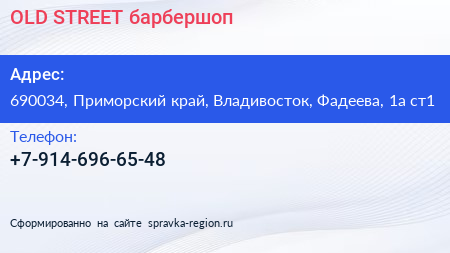 OLD STREET, барбершоп по адресу 690034, Приморский край, Владивосток, Фадеева, 1а ст1 в дальнейшем Организация, размещена в следующих категориях: