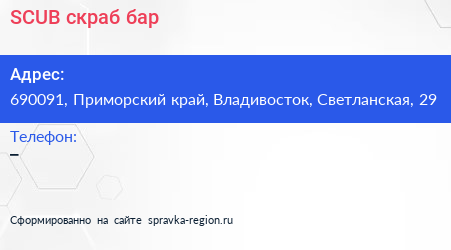 SCUB, скраб-бар по адресу 690091, Приморский край, Владивосток, Светланская, 29 в дальнейшем Организация, размещена в следующих категориях: