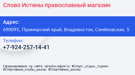 Слово Истины, православный магазин по адресу 690091, Приморский край, Владивосток, Семёновская, 5 в дальнейшем Организация, размещена в следующих категориях: