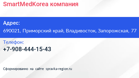 SmartMedKorea, компания по адресу 690021, Приморский край, Владивосток, Запорожская, 77 в дальнейшем Организация, размещена в следующих категориях: