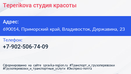 Teperikova, студия красоты по адресу 690014, Приморский край, Владивосток, Державина, 23 в дальнейшем Организация, размещена в следующих категориях: