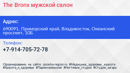 The Bronx, мужской салон по адресу 690091, Приморский край, Владивосток, Океанский проспект, 10Б в дальнейшем Организация, размещена в следующих категориях: