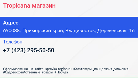 Tropicana, магазин по адресу 690088, Приморский край, Владивосток, Деревенская, 16 в дальнейшем Организация, размещена в следующих категориях: