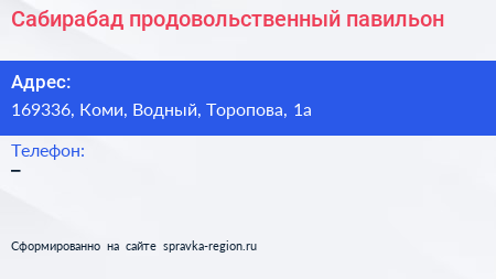 Сабирабад, продовольственный павильон по адресу 169336, Коми, Водный, Торопова, 1а в дальнейшем Организация, размещена в следующих категориях: