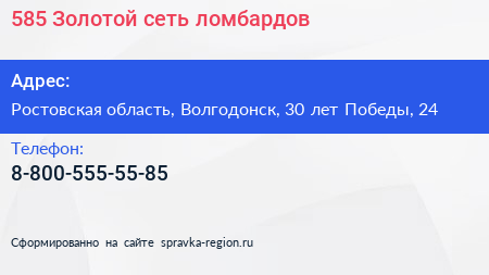 585*Золотой, сеть ломбардов по адресу Ростовская область, Волгодонск, 30 лет Победы, 24 в дальнейшем Организация, размещена в следующих категориях: