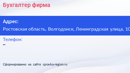 Бухгалтер, фирма по адресу Ростовская область, Волгодонск, Ленинградская улица, 10 в дальнейшем Организация, размещена в следующих категориях:
