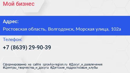 Мой бизнес по адресу Ростовская область, Волгодонск, Морская улица, 102а в дальнейшем Организация, размещена в следующих категориях: