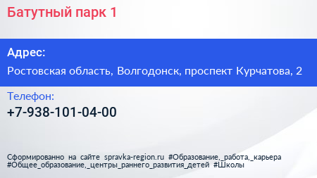 Батутный парк №1 по адресу Ростовская область, Волгодонск, проспект Курчатова, 2 в дальнейшем Организация, размещена в следующих категориях: