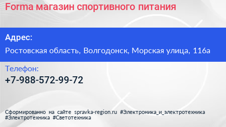 Forma, магазин спортивного питания по адресу Ростовская область, Волгодонск, Морская улица, 116а в дальнейшем Организация, размещена в следующих категориях: