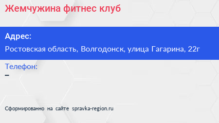 Жемчужина, фитнес-клуб по адресу Ростовская область, Волгодонск, улица Гагарина, 22г в дальнейшем Организация, размещена в следующих категориях: