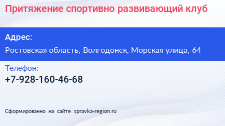 Притяжение, спортивно-развивающий клуб по адресу Ростовская область, Волгодонск, Морская улица, 64 в дальнейшем Организация, размещена в следующих категориях: