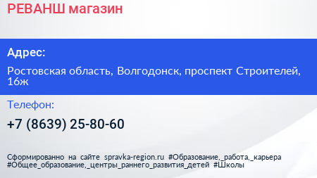 РЕВАНШ, магазин по адресу Ростовская область, Волгодонск, проспект Строителей, 16ж в дальнейшем Организация, размещена в следующих категориях: