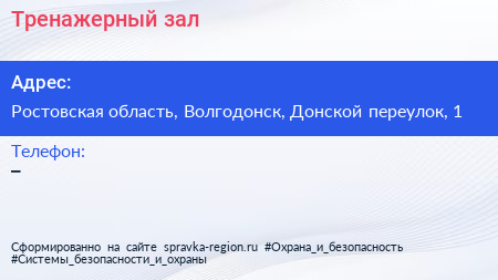 Тренажерный зал по адресу Ростовская область, Волгодонск, Донской переулок, 1 в дальнейшем Организация, размещена в следующих категориях: